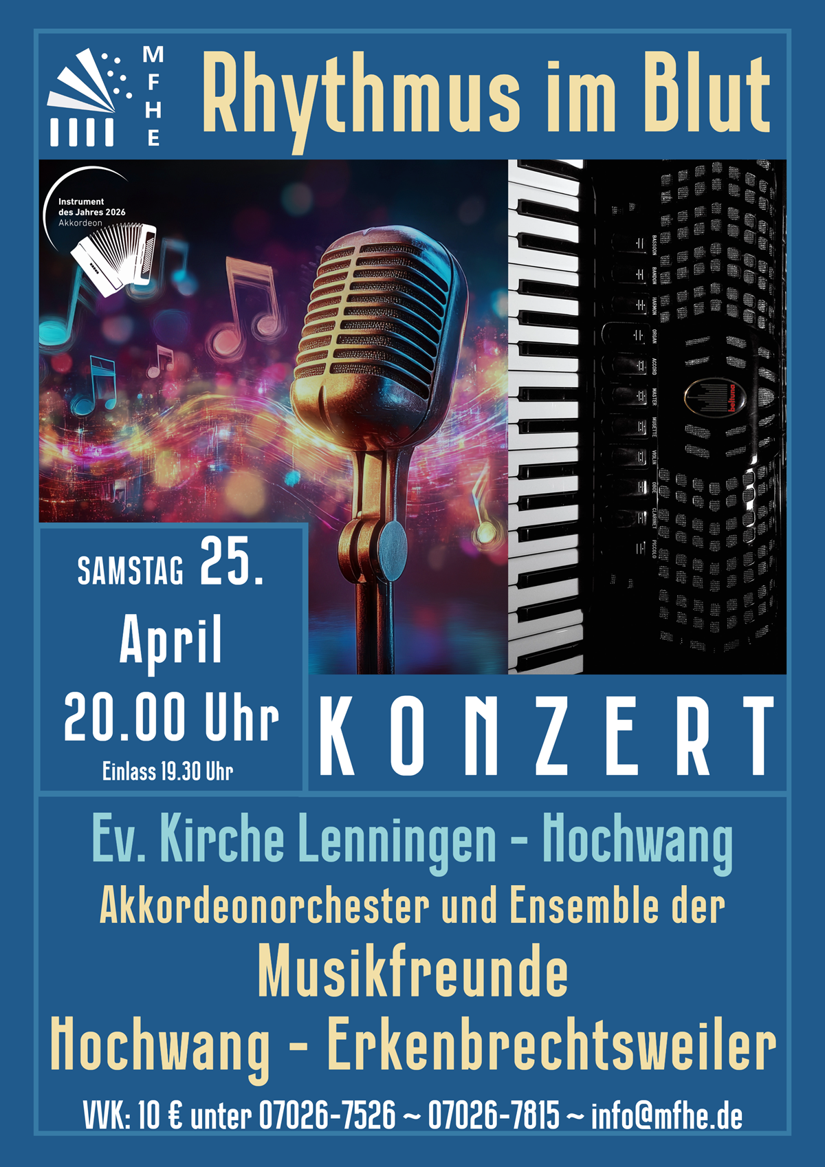 In diesem Rahmen zeigen wir in unserem Konzert die Bandbreite moderner Akkordeonmusik und präsentieren dieses Instrument mit all seinen Klangfarben.